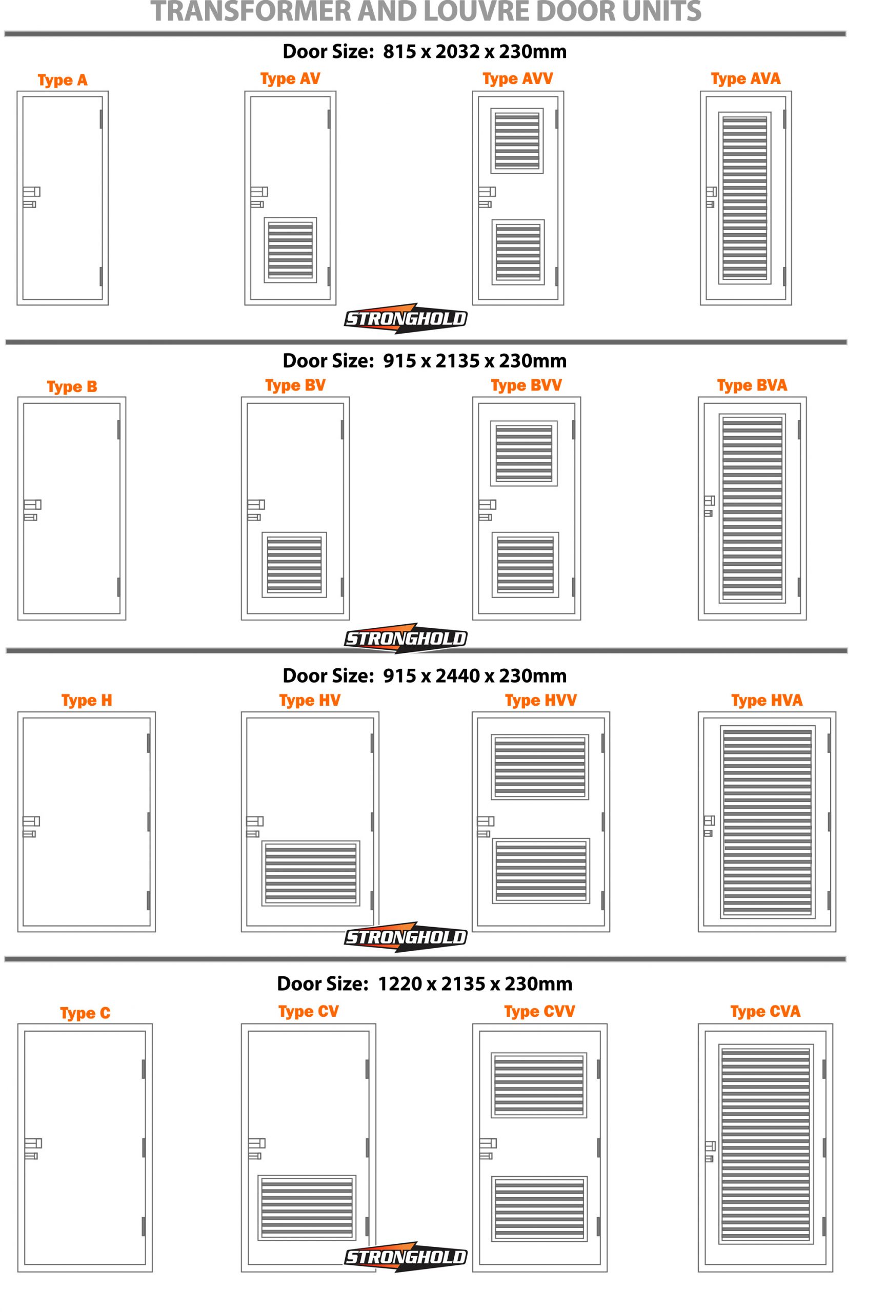 Stronghold manufactures both standard and customised transformer substation doors and louvres to meet your requirements. Each louvred door is factory fitted with a mesh screen/ vermin proofing as a standard. Special requests such as dust filters, crawl beam cut-outs, fixed or removable transom sections, specialised ironmongery, powder coating, etc, must be discussed with our design team, prior to manufacturing. We manufacture a wide range of steel doors and are happy to work with you to fulfil your design requirements.